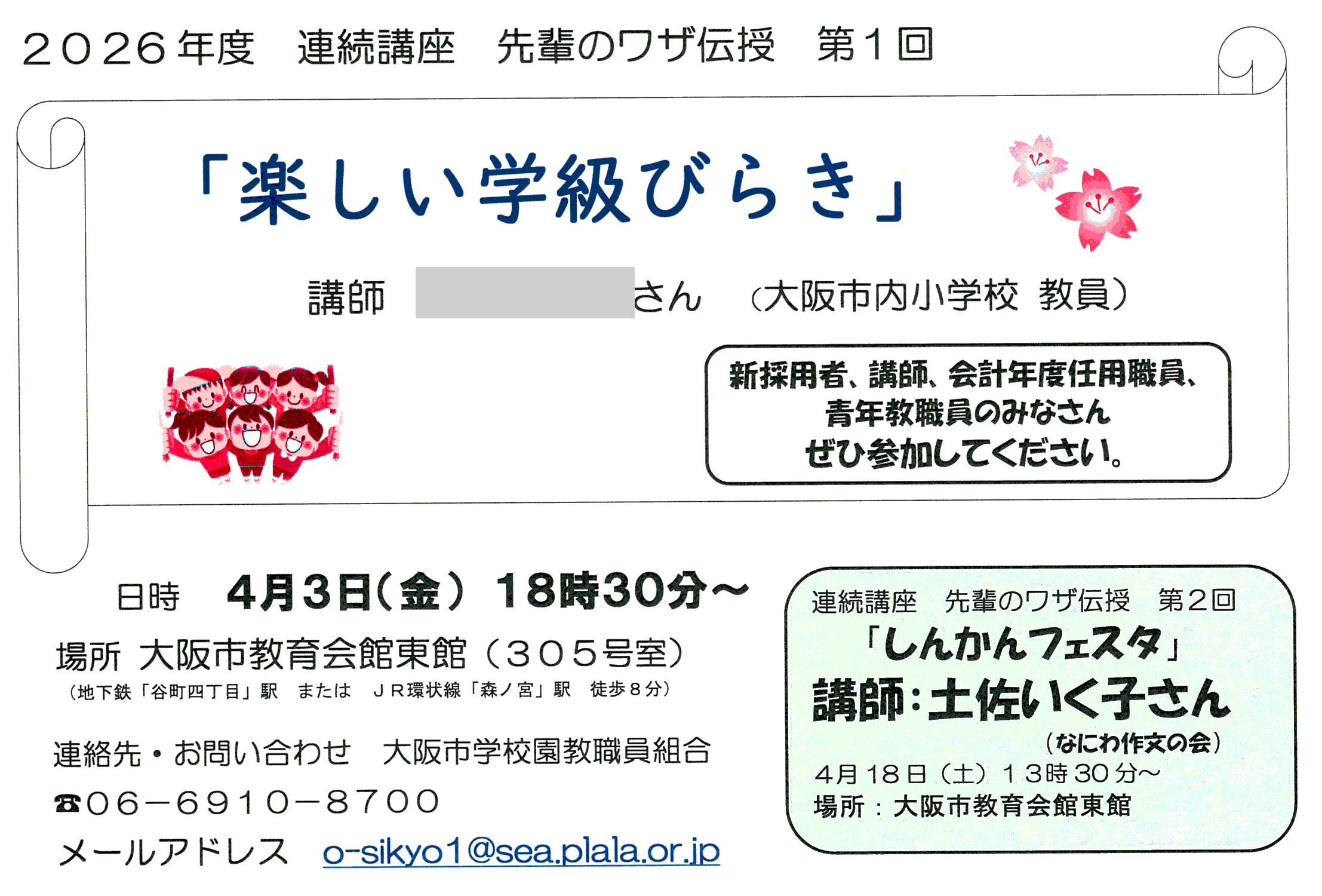 ニュース「大阪市教」(上の画像は見本です。毎月更新。号外随時)