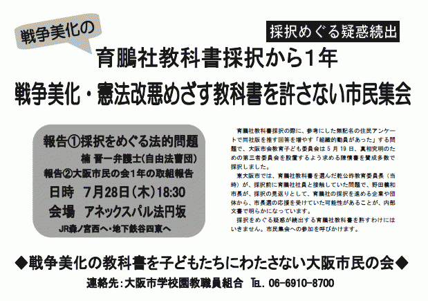 大阪市立の幼稚園・小学校・中学校の教職員で構成している組合です
